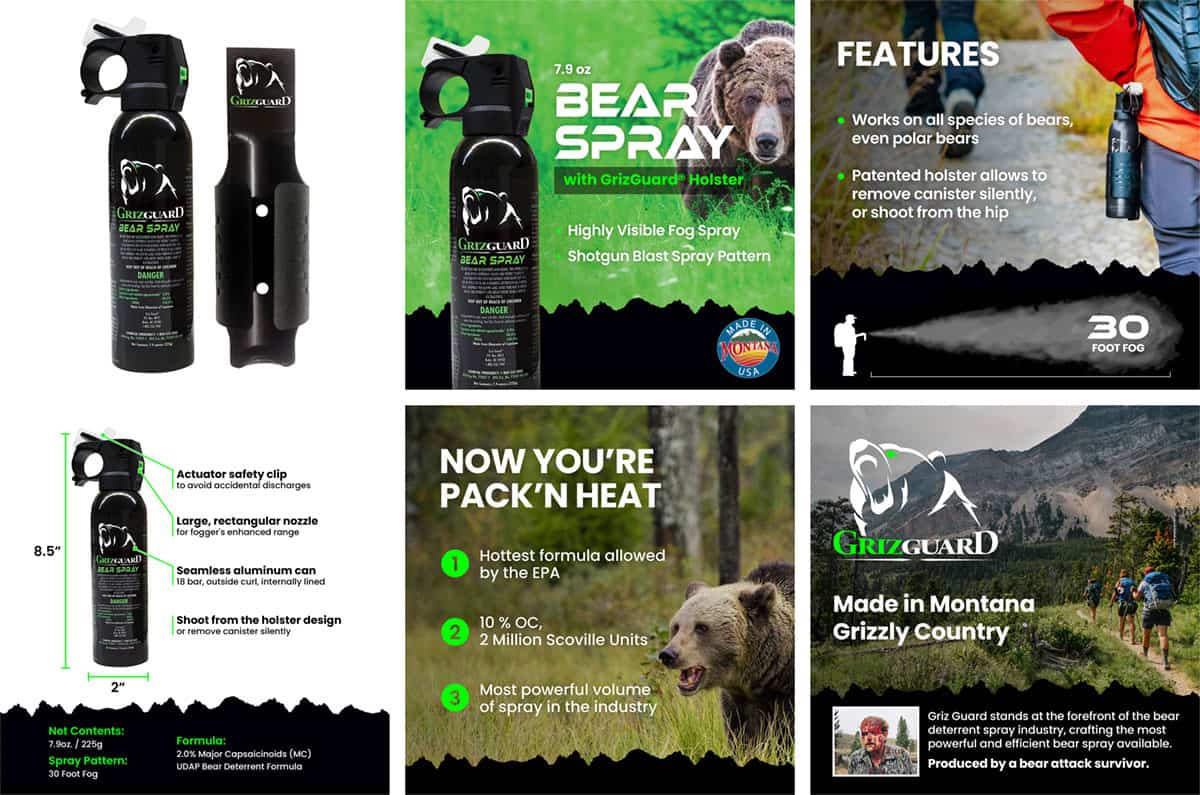 The Griz Guard Bear Spray is a reliable solution for unwanted bear encounters. It ensures a safe and quick escape with a spraying range of up to 30 feet and the ability to empty in just 4 seconds. Its formula, containing 2% capsaicin and related capsaicinoids, is highly effective against all bear species.