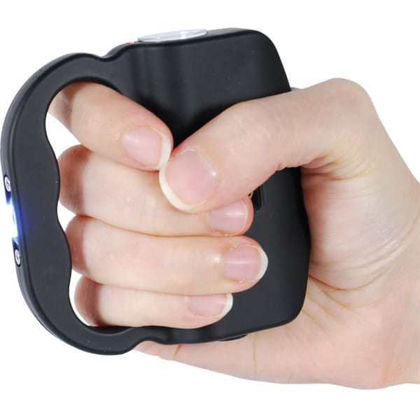Stand your ground with the Talon 75 Million volt Stun Gun. Fits comfortably and seamlessly in the hand, the Talon delivers super powered stun protection. The Talon’s trigger is hidden by the palm of the hand, so just a quick squeeze of the stun gun fires 75 Million volts through an attacker when needed. The sound of the Talon’s stun may defuse a dangerous situation before it even begins! It has a blinding 120 Lumen LED flashlight and a rubberized coating for a superb grip. You can carry the Talon in your hand, pocket, or in the nylon belt holster that’s included. The Talon comes with a charging cord to recharge the stun gun and flashlight. It uses nickel cadmium rechargeable batteries.